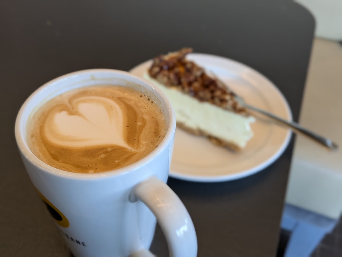 Café Morgane offers a delightful experience for coffee and dessert lovers. The moment you step in, you’re welcomed by a cozy and inviting atmosphere. The highlight of my visit was their cheesecake, which was absolutely divine. Topped with crunchy pecans, it was the perfect blend of creamy and nutty flavors. Their coffee is also noteworthy. The latte I had was not only delicious but also beautifully presented with intricate latte art. It’s clear that they take great pride in both the quality and presentation of their offerings. The café itself is clean and modern, making it a comfortable spot to relax or catch up with friends. While the decor is simple, it adds to the overall charm of the place.